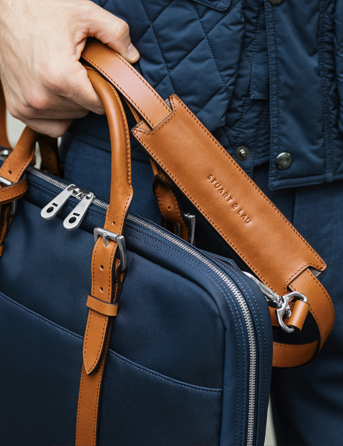 The Cary Briefcase – featuring a convenient sleeve for rolling luggage, making longer journeys a breeze.